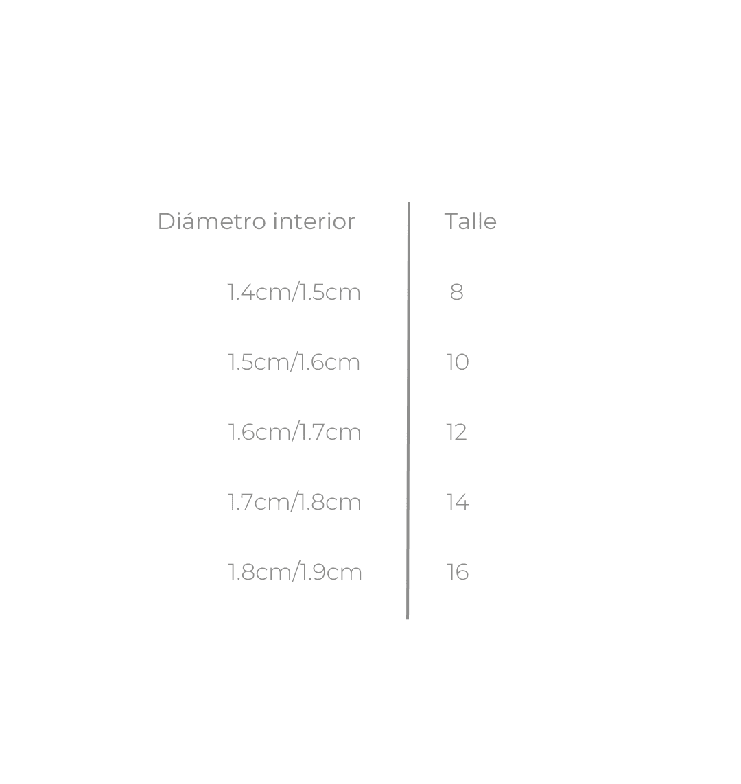 Utilizá esta guía para identificar tu medida y confirmar si el anillo se ajusta a vos o para solicitar el talle adecuado.